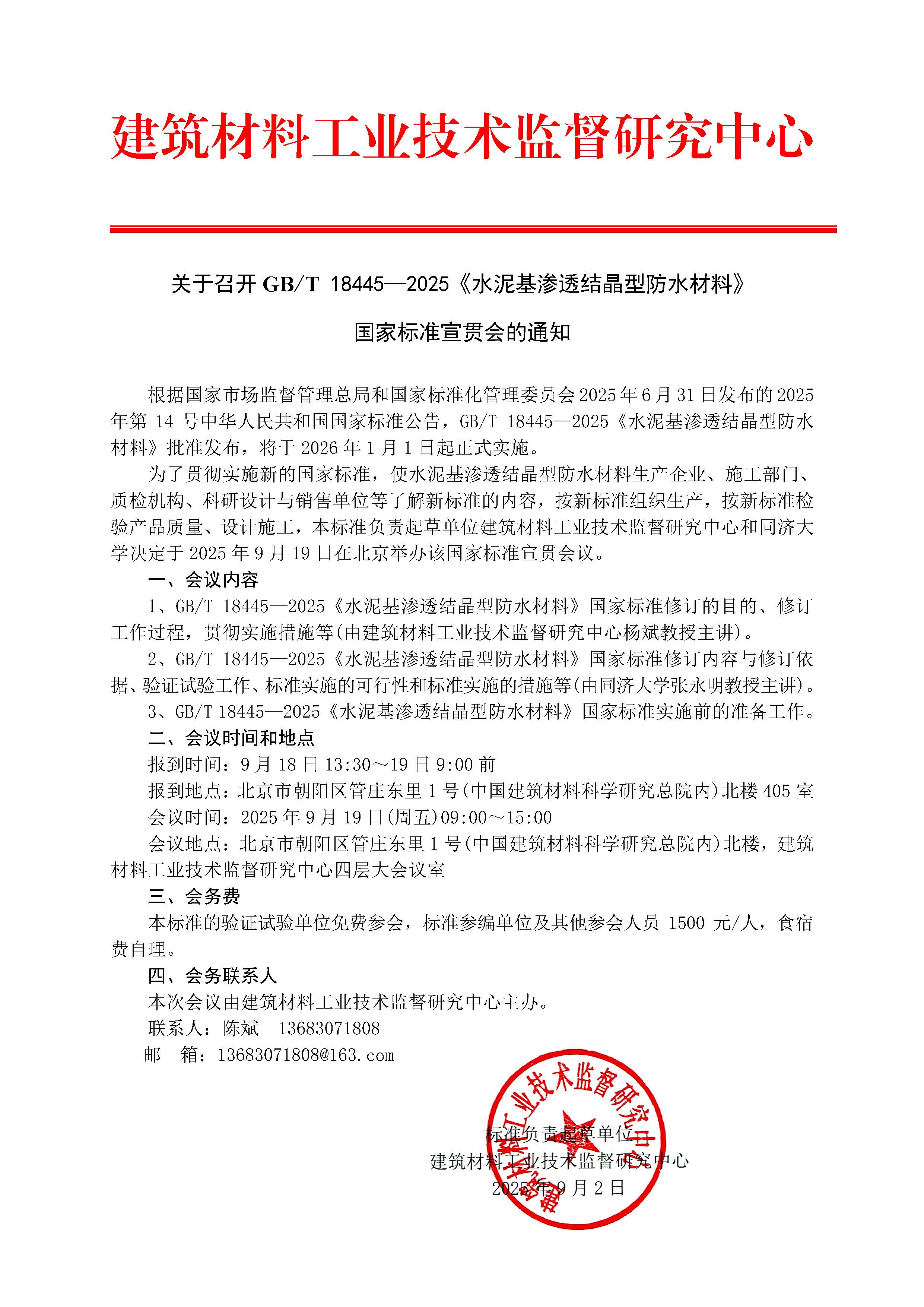 1.關(guān)于召開(kāi)GB/T 18445—2025《水泥基滲透結(jié)晶型防水材料》 國(guó)家標(biāo)準(zhǔn)宣貫會(huì)的通知